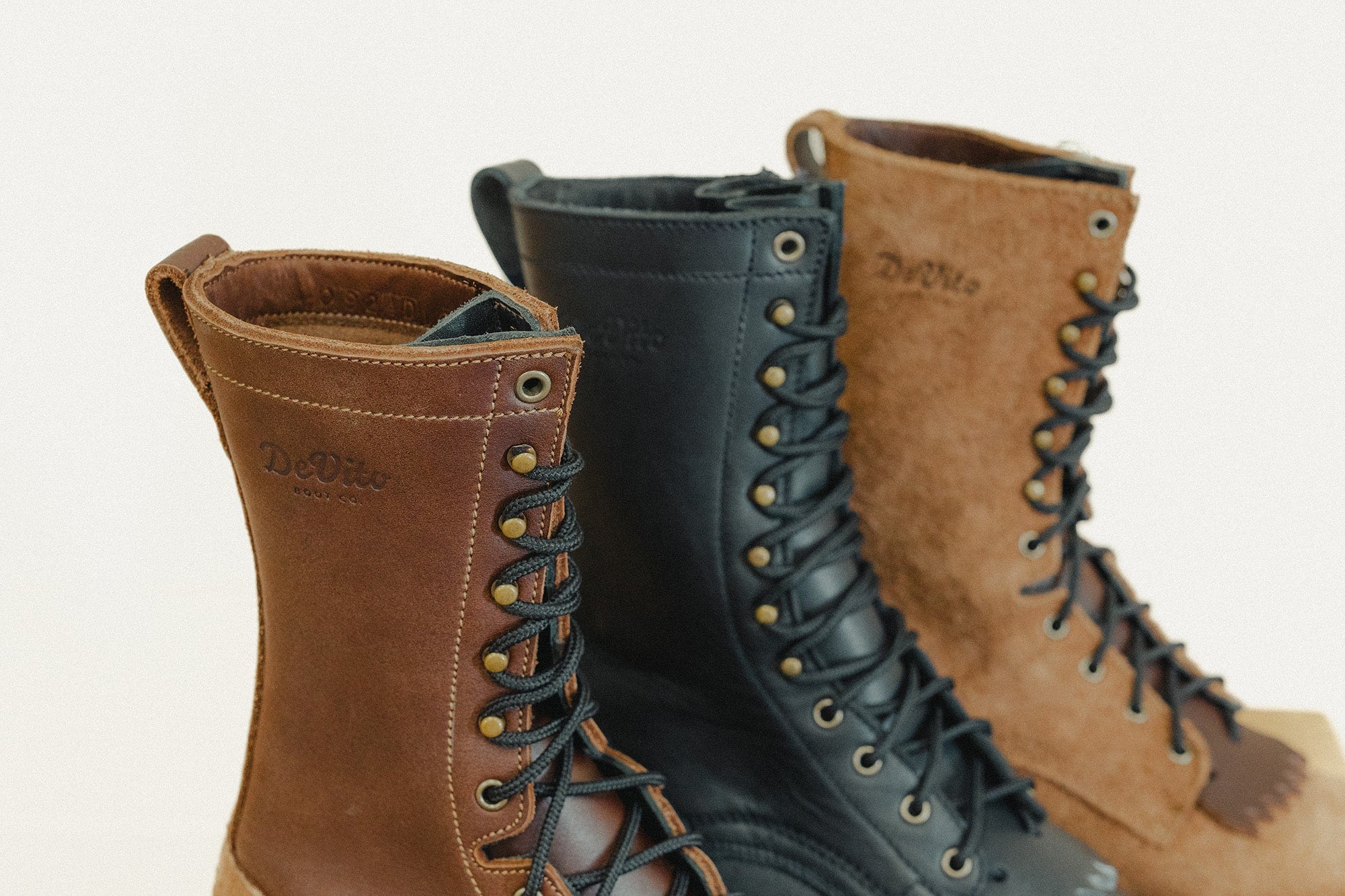 Use a gentle brush to remove grit and dirt. Followed by warm water and dish soap. Avoid subjecting wet boots to intense heat sources. Allow boots to dry at room temperature. Regularly apply DeVito’s Leather Conditioner to help repel water and keep the boots properly conditioned. Each pair of boots comes with a detailed care list.